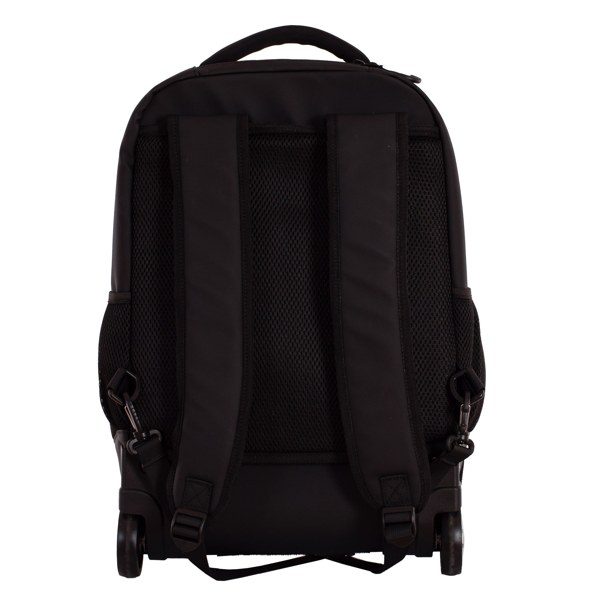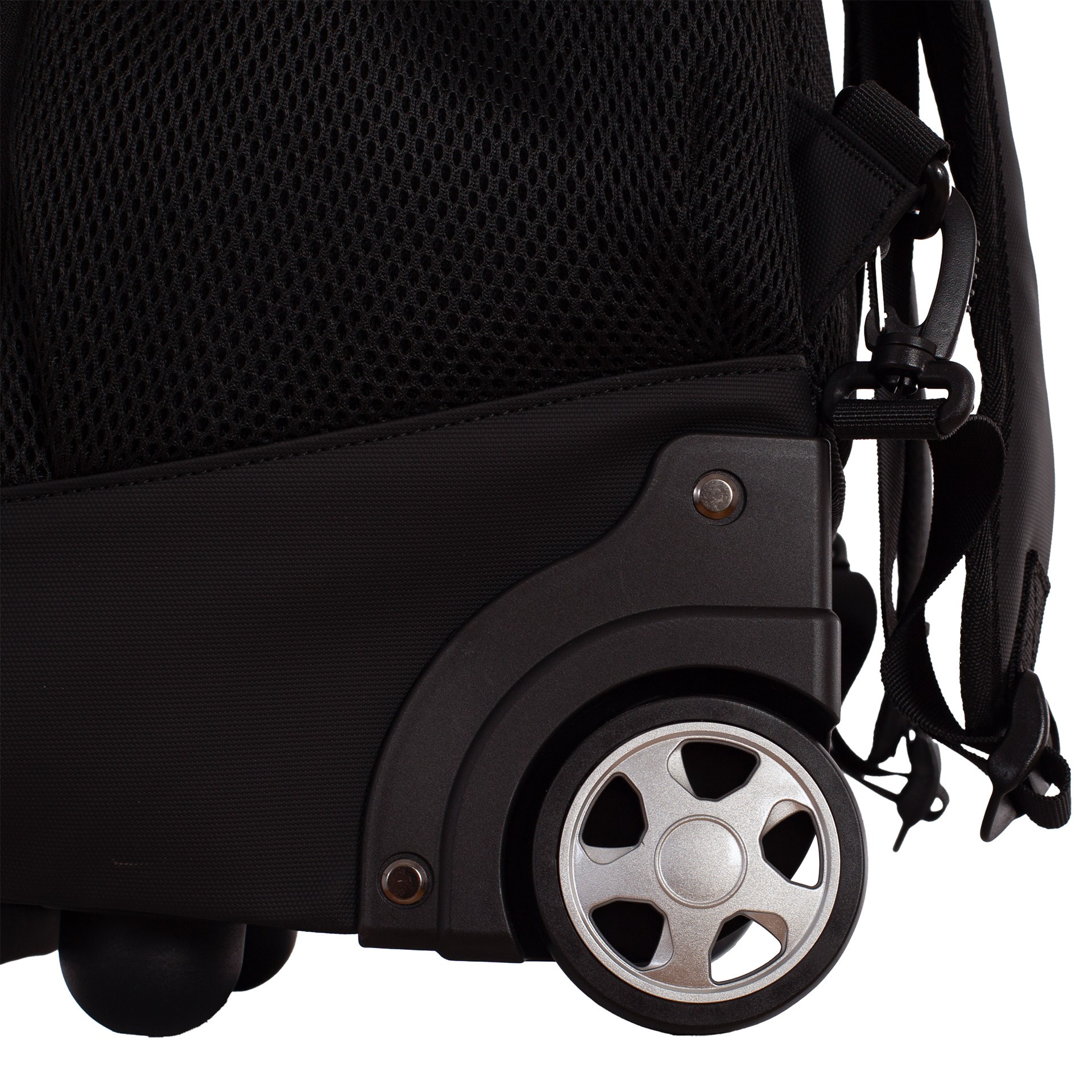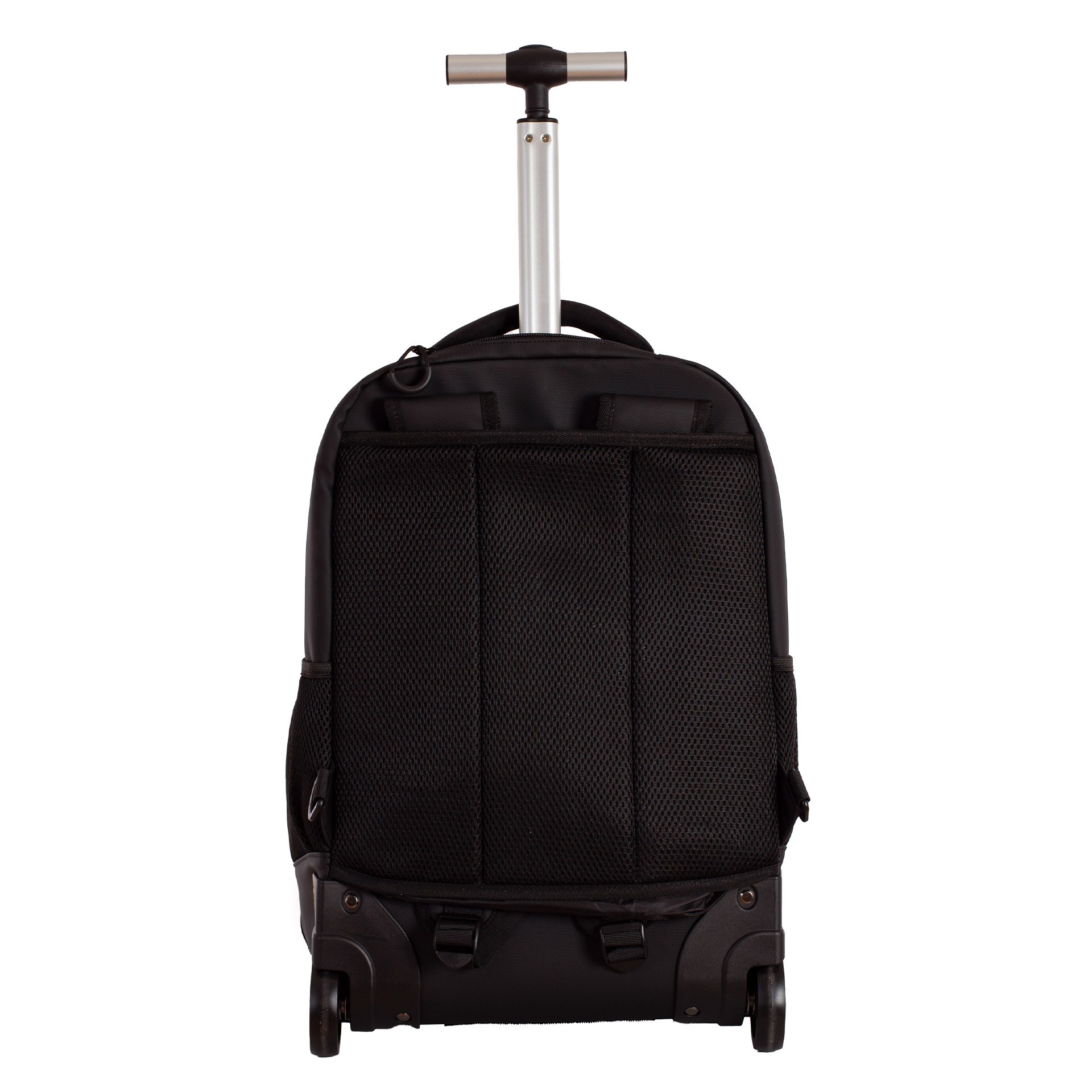Incorpora un sistema trolley con asa telescópica y ruedas, permitiendo transportarla sin cargar peso. Aunque también se puede llevar a la espalda, ya que cuenta con asas y espalda acolchada; incluye un cubreruedas para evitar manchas.