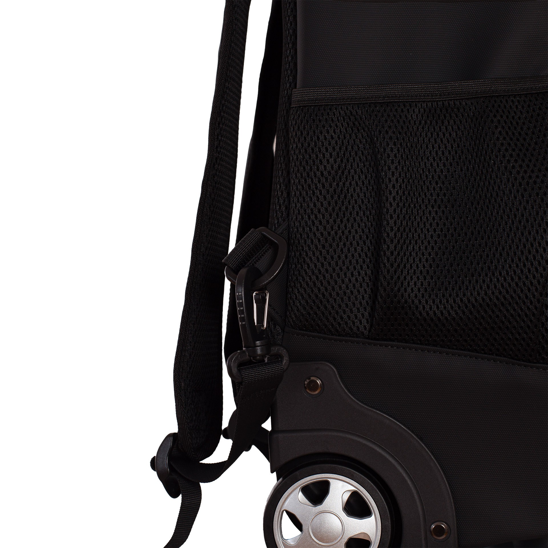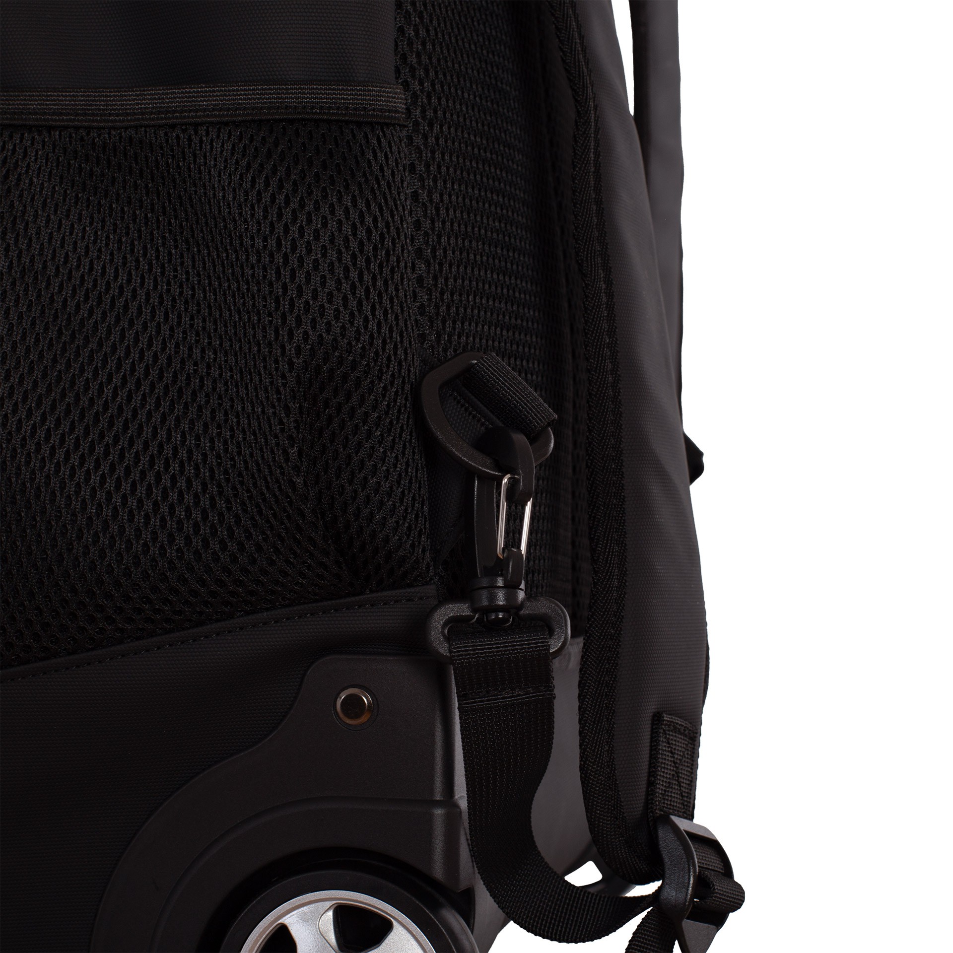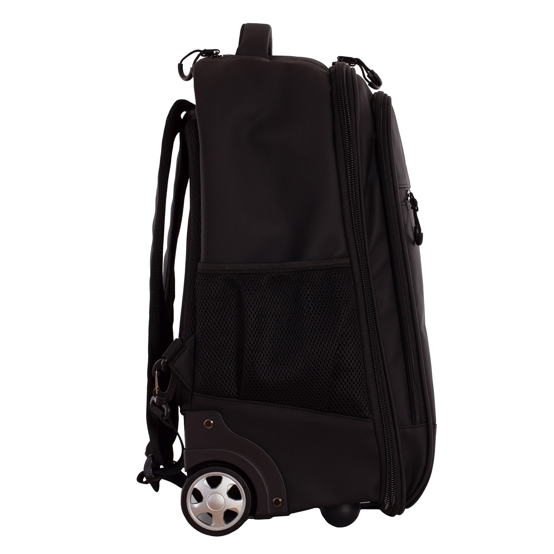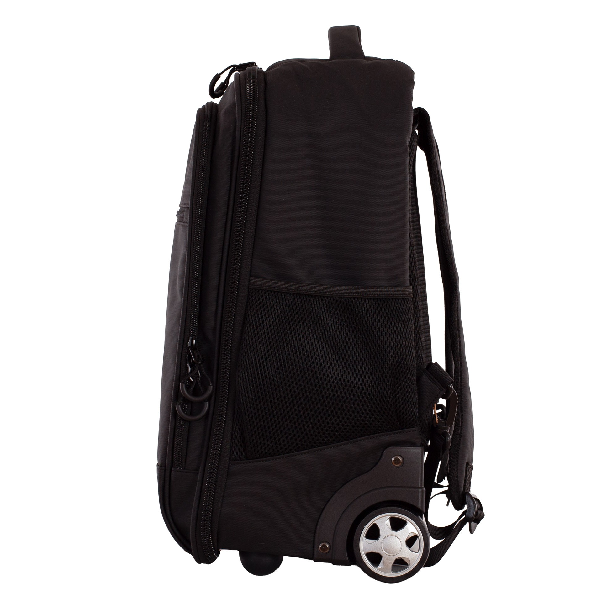 Incorpora un sistema trolley con asa telescópica y ruedas, permitiendo transportarla sin cargar peso. Aunque también se puede llevar a la espalda, ya que cuenta con asas y espalda acolchada; incluye un cubreruedas para evitar manchas.