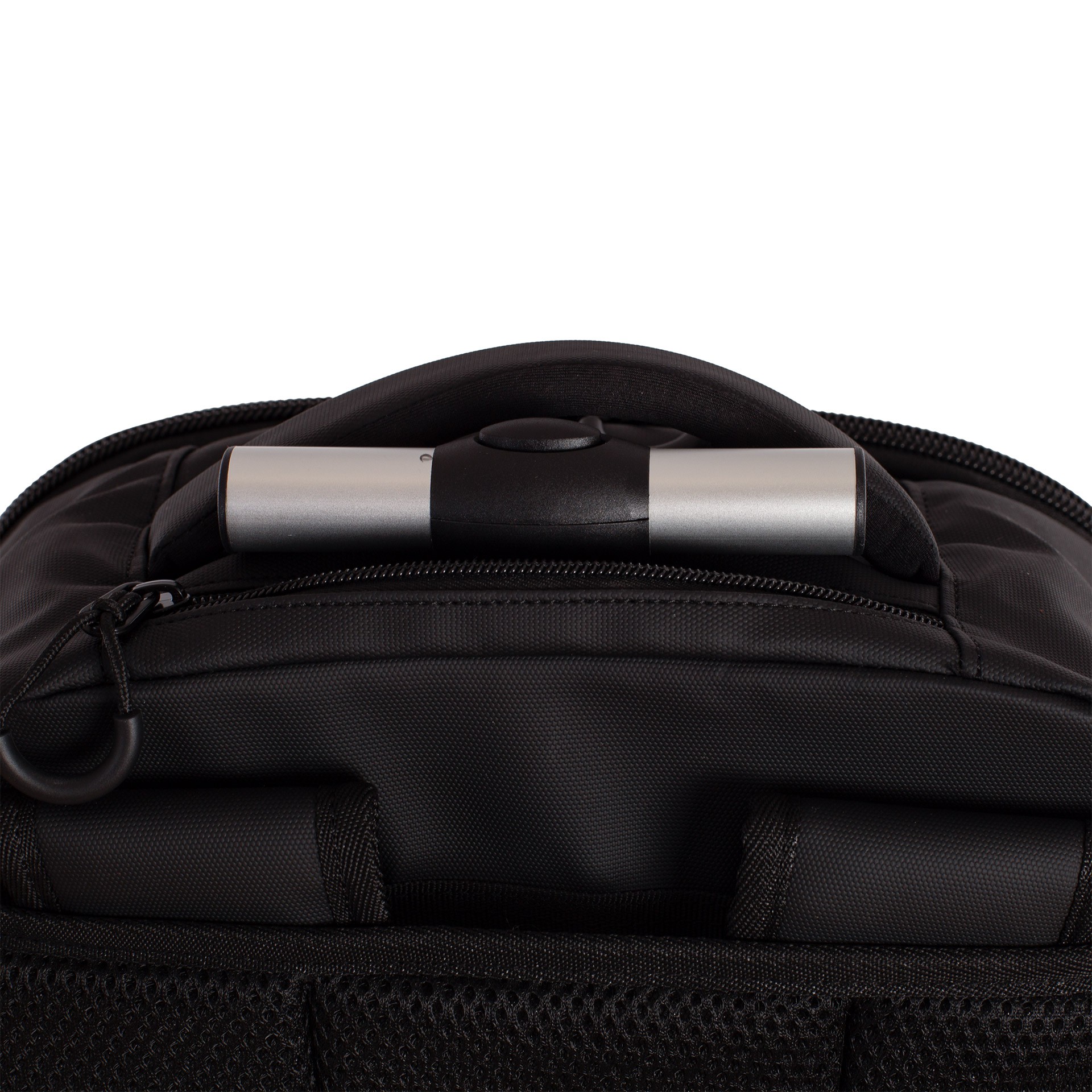 Compartimento más pequeño, también en la parte frontal, y con doble cremallera para portátil y bolsillo pequeño.