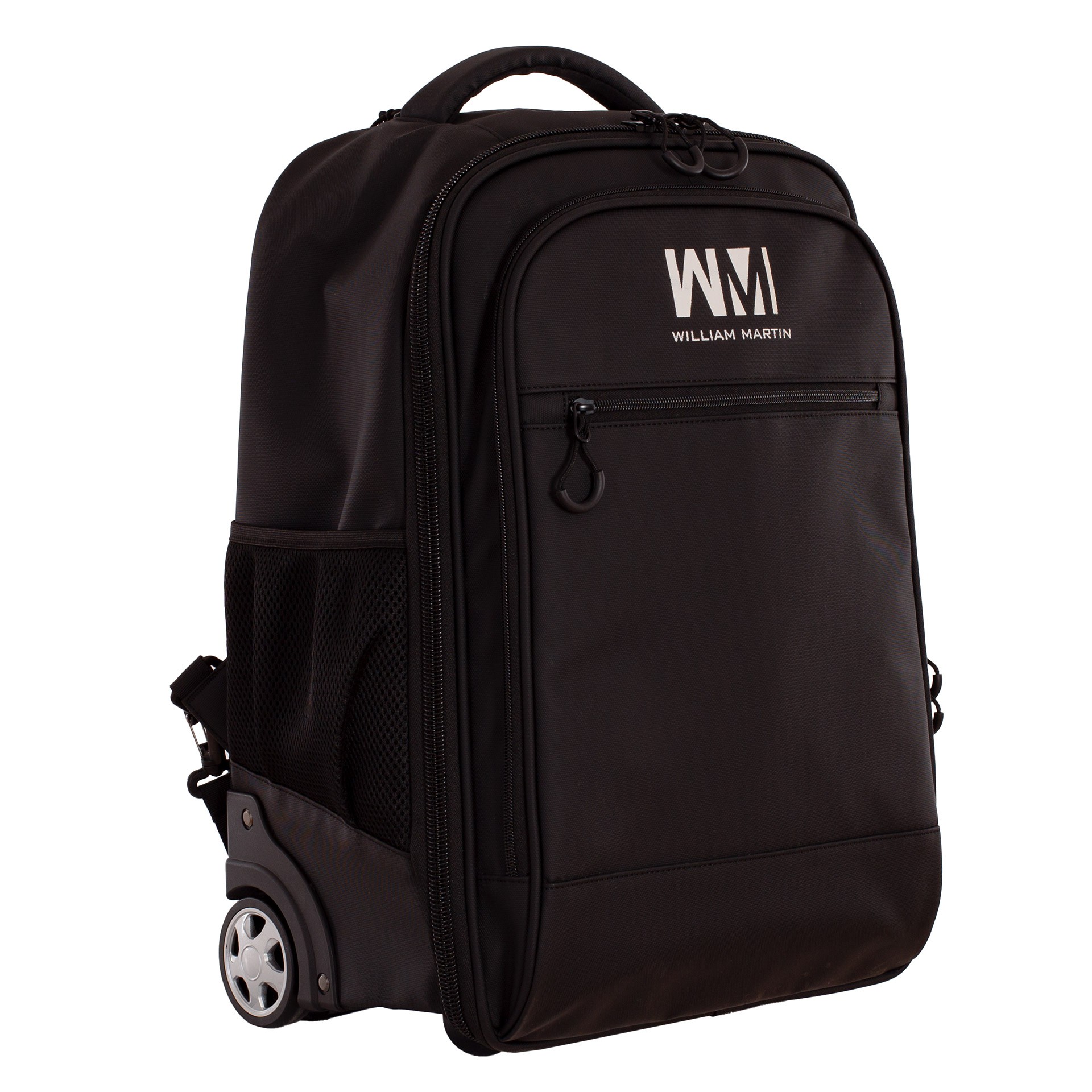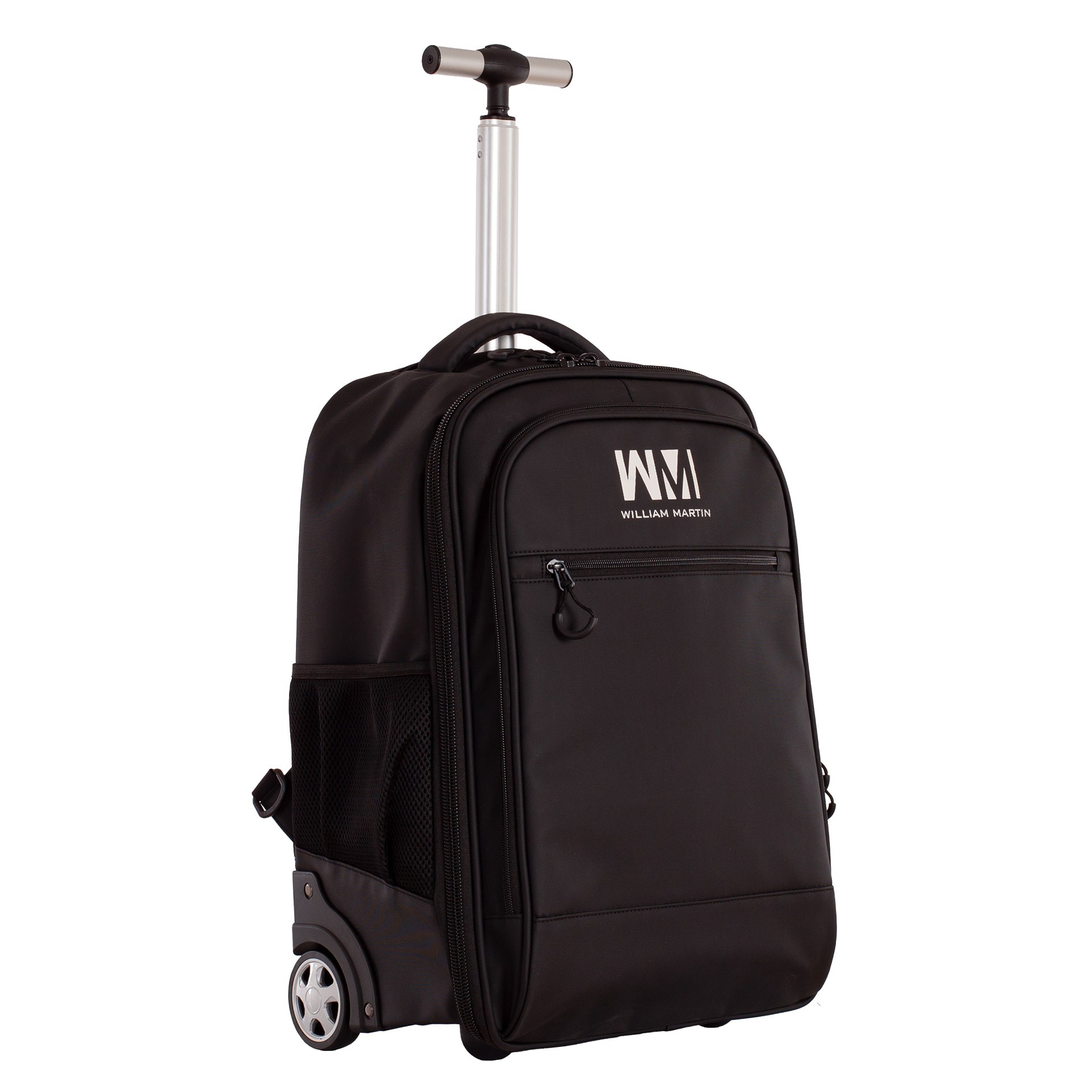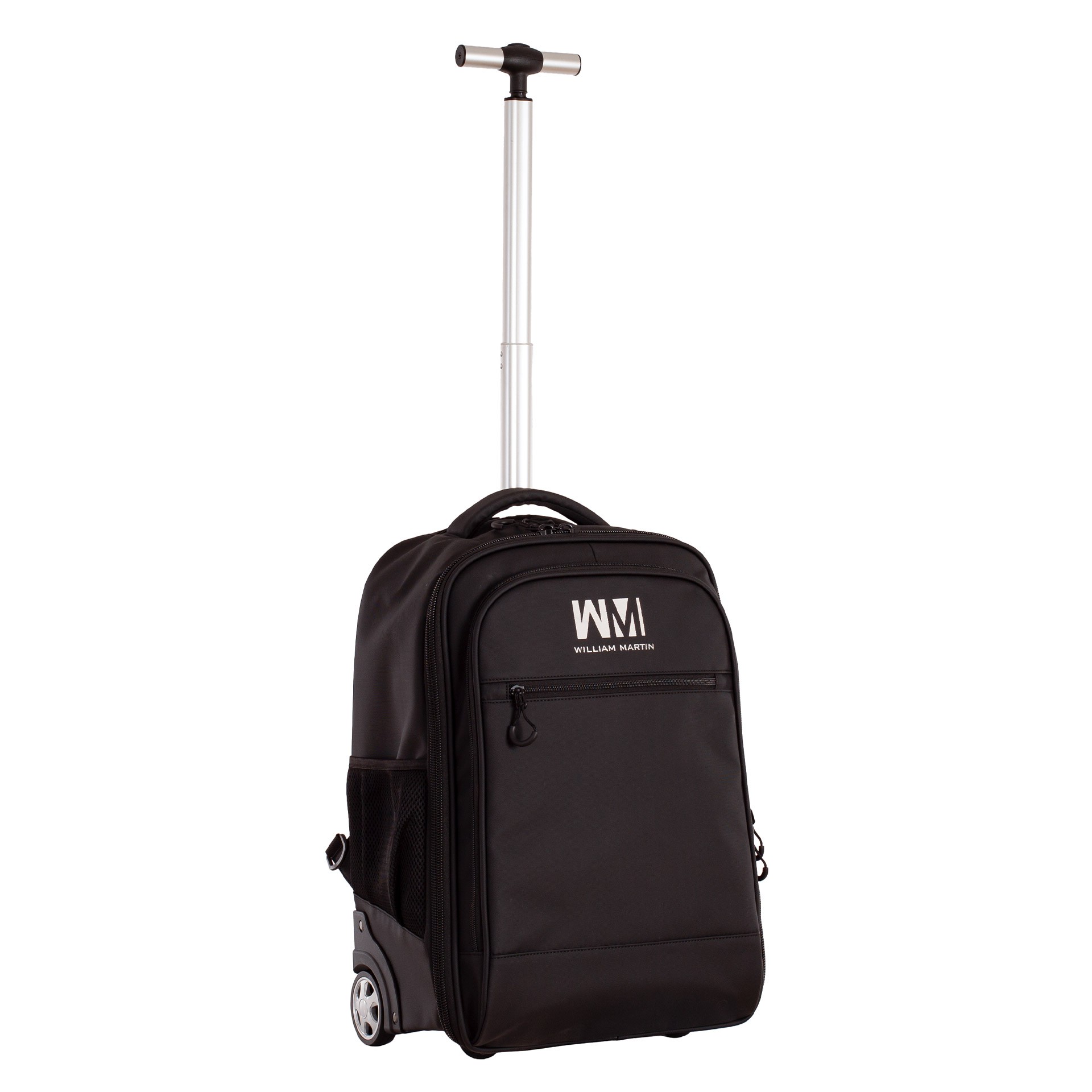 Fabricada con materiales resistentes y acabados de alta calidad, este trolley ofrece un diseño limpio y moderno en color negro con el logo de William Martin en la parte frontal.