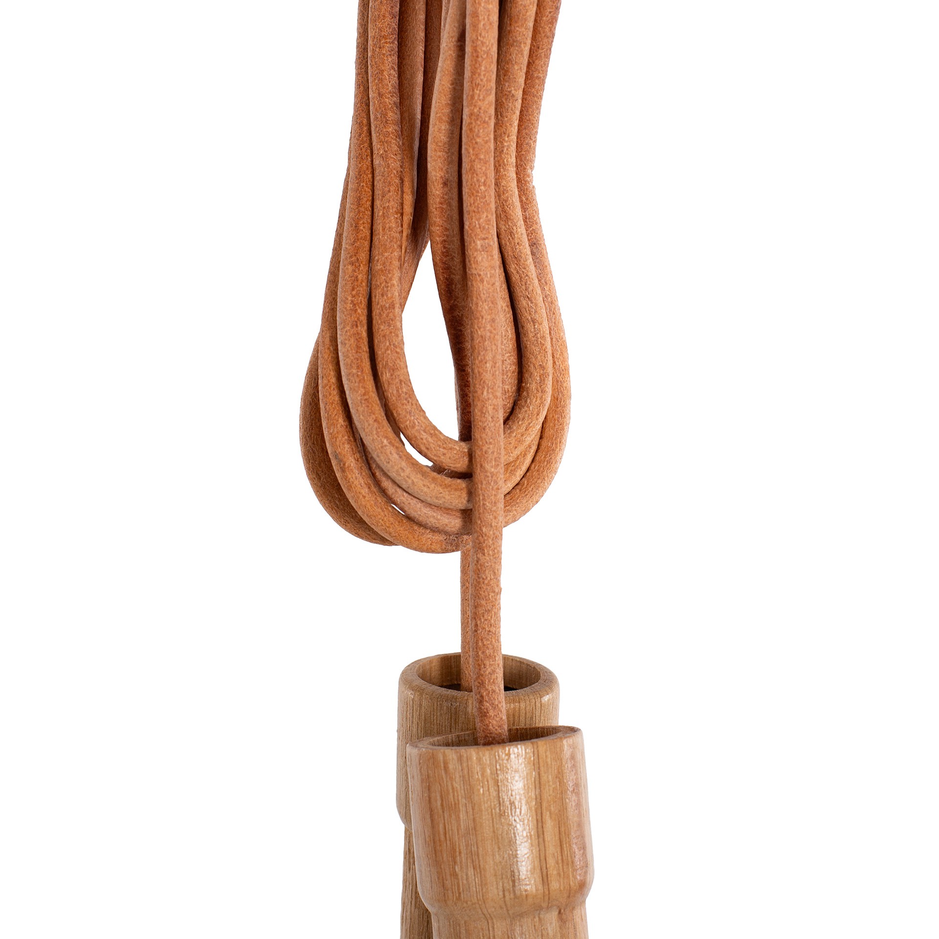 Comba con agarres en madera. Ideal para uso regular por su composición en cuero. Longitud de la cuerda sin agarres: 280cm.