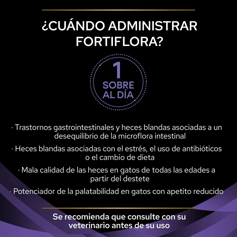 – Durante los cambios de alimentación: Al transicionar a un nuevo pienso, el sistema digestivo del gato necesita adaptarse. FortiFlora facilita esta adaptación, minimizando el riesgo de diarreas o malestar digestivo.