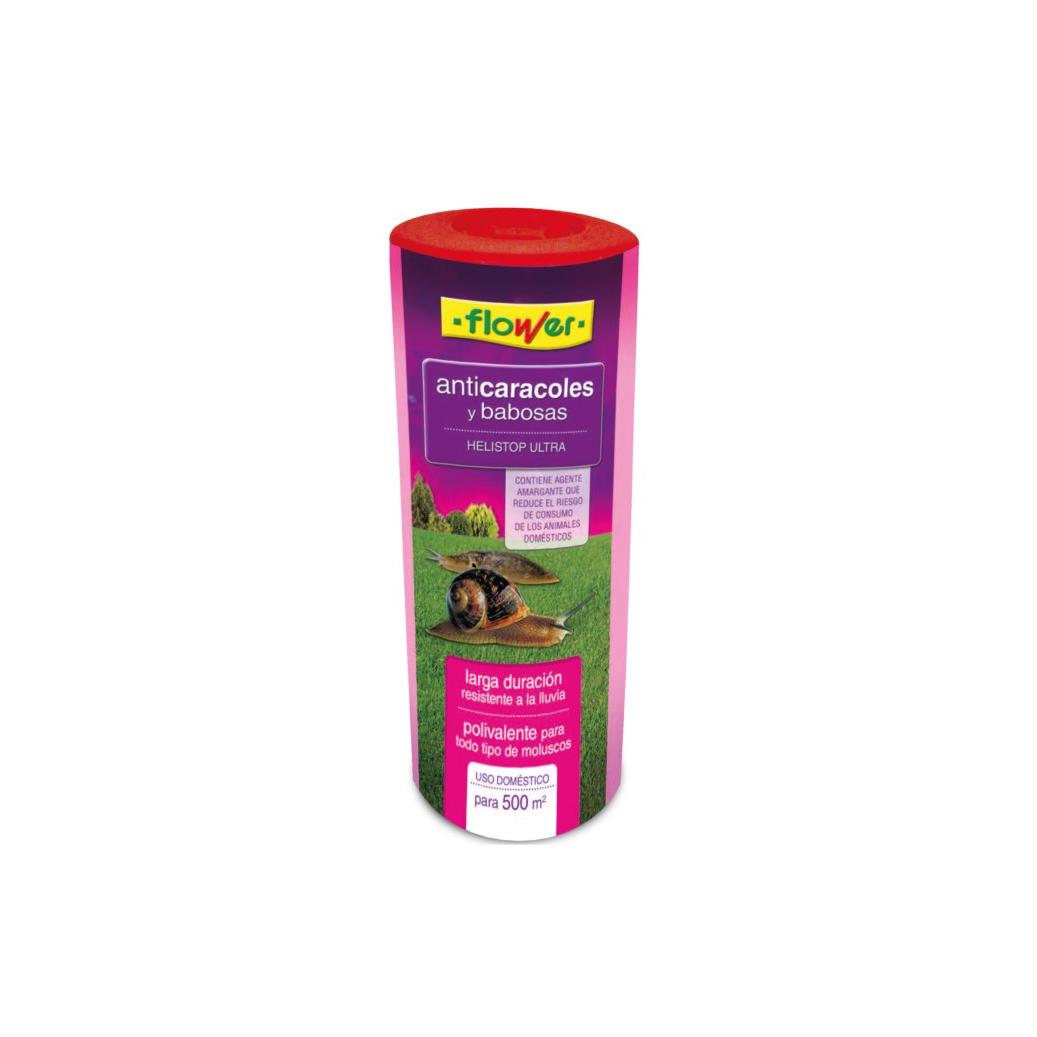 Anticaracoles HELISTOP ULTRA es un molusquicida con cierta actividad insecticida, a base de metaldehído, que actúa por contacto e ingestión, para el control de todo tipo de caracoles y babosas. Formulado con harinas de alta calidad, lo convierten en un producto muy atractivo y apetente para estos animales. Al ser altamente resistente a la humedad se emplea de forma eficaz tras una lluvia o un riego, precisamente cuando estos animales muestran mayor actividad biológica. Se presenta en forma de cebo microgranulado facilitando una cómoda y uniforme distribución, con ausencia total de polvo. Su presentación en talquera o caja con orificios de dosificación permite una cómoda, fácil y segura aplicación al no entrar en contacto con el producto la persona que lo utiliza. Incorpora un alto contenido de agente amargante que actúa como repelente para disuadir de su consumo a los animales domésticos y, por supuesto, a las personas. AUTORIZADO PARA JARDINERIA EXTERIOR DOMÉSTICA.