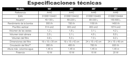 – Fluval es la única marca que ofrece el prefiltro en una orientación vertical, lo que da más área de superficie y una mejor filtración mecánica