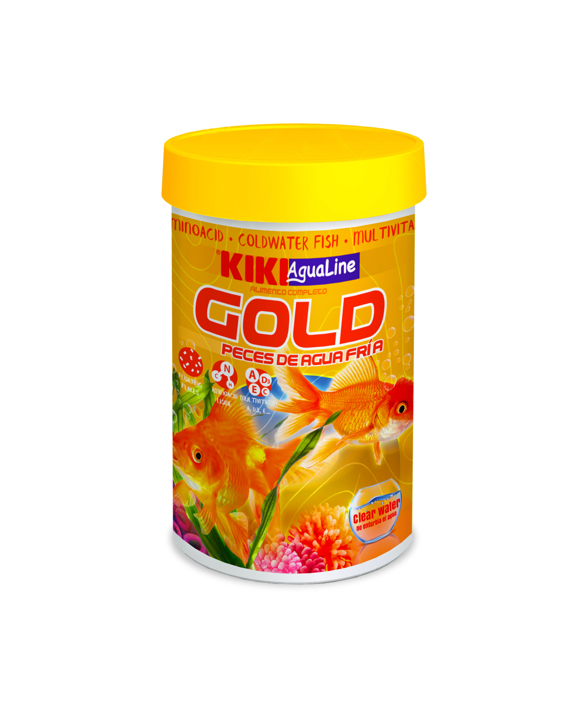 Alimento completo en escamas para todo tipo de peces de agua fría, ideal tanto en acuarios como en estanques. Elaborado sólo con ingredientes de 1primera calidad y pensado para cubrir todas las necesidades nutricionales de los peces.  Incorpora vitaminas y aminoácidos microencapsulados para un perfecto mantenimiento y estabilidad de los mismos, que convierten a KIKI GOLD en el alimento más completo e ideal para mantener sus peces sanos, activos y con colores vivos e intensos. Da muy buenos resultados para la reproducción, al incrementar la fertilidad tanto de machos como hembras. Estimula el sistema inmunológico de los peces. Reduce las excreciones de sustancias nitrogenadas y de minerales contaminantes como el fósforo.