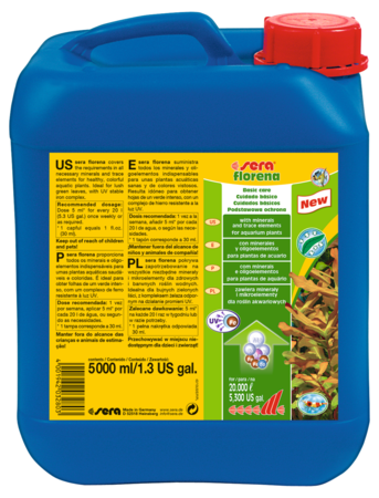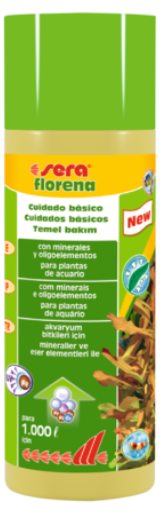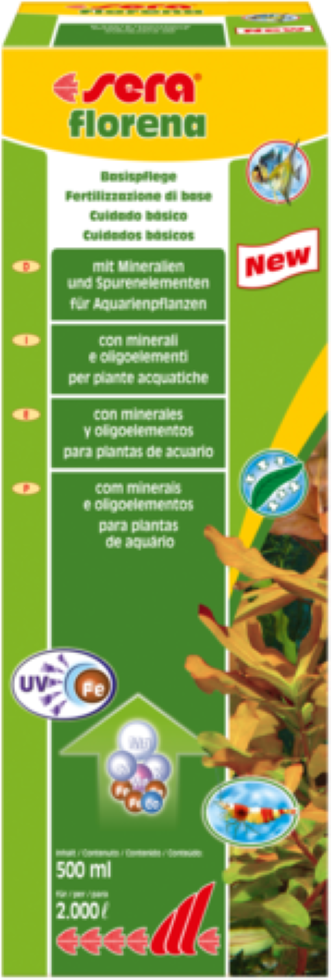 Las plantas acuáticas desempeñan un papel importante en el acuario, puesto que eliminan las sustancias nocivas del agua y quitan los nutrientes a las algas. Para que las plantas acuáticas puedan llevar a cabo esta tarea importante, sera florena suministra a las plantas acuáticas todos los minerales y oligoelementos esenciales para un crecimiento sano y colores vistosos. De esta manera se evitan los síntomas de carencia, sin que se produzca una contaminación innecesaria del agua.