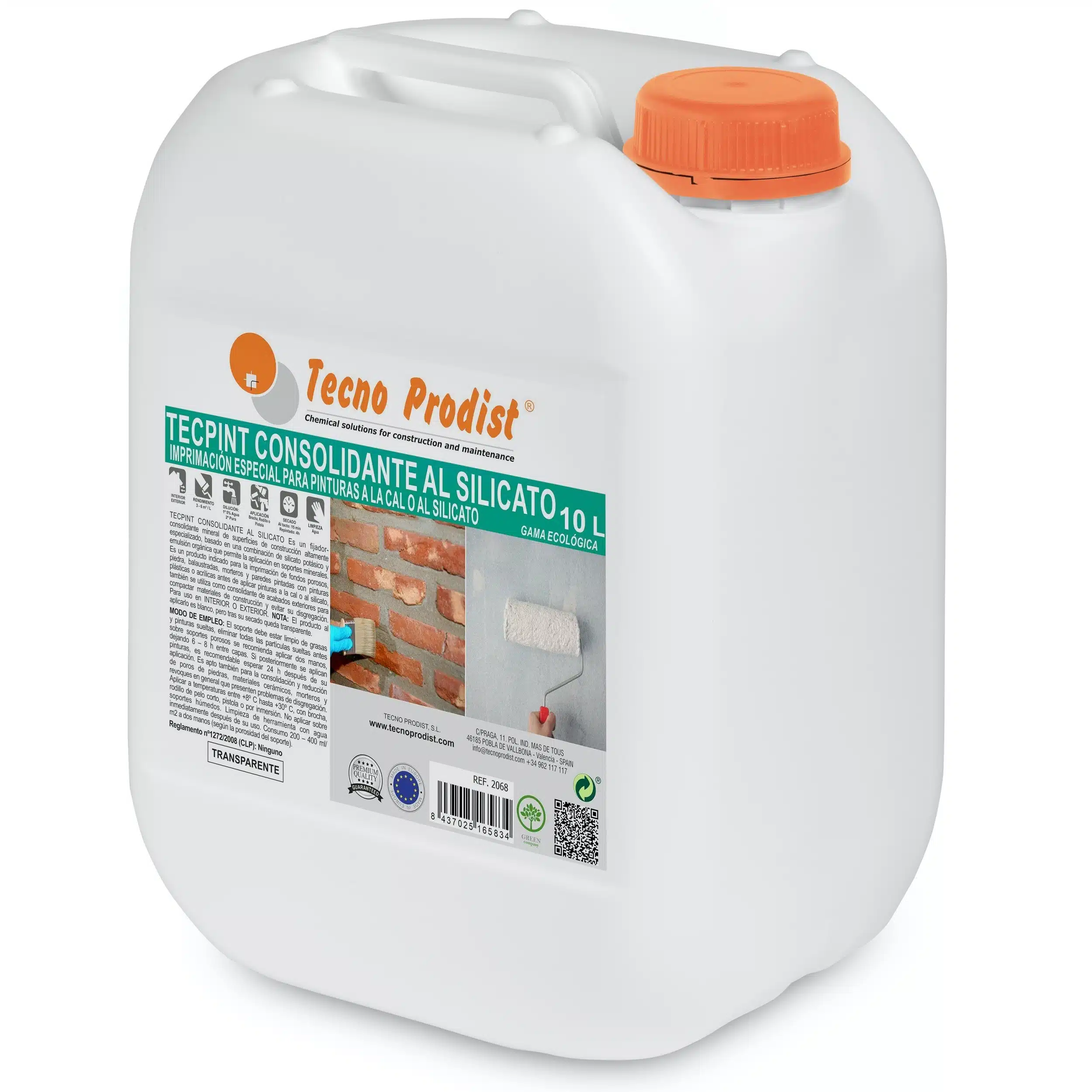 Tecpint Consolidante al Silicato de Tecno Prodist es un fijador para paredes de piedra y ladrillo formulado para fortalecer y proteger superficies de piedra natural, ladrillo y otros materiales porosos en construcciones tanto interiores como exteriores. Este consolidante al silicato se utiliza como base o imprimación, proporcionando una capa de alta adherencia y resistencia sobre la que pueden aplicarse pinturas a la cal o al silicato, maximizando la durabilidad y el acabado de los revestimientos. Al penetrar profundamente en las superficies, este fijador para piedra y ladrillo asegura que las paredes queden protegidas de los factores externos y del desgaste, conservando la integridad estructural y la estética original de los materiales.