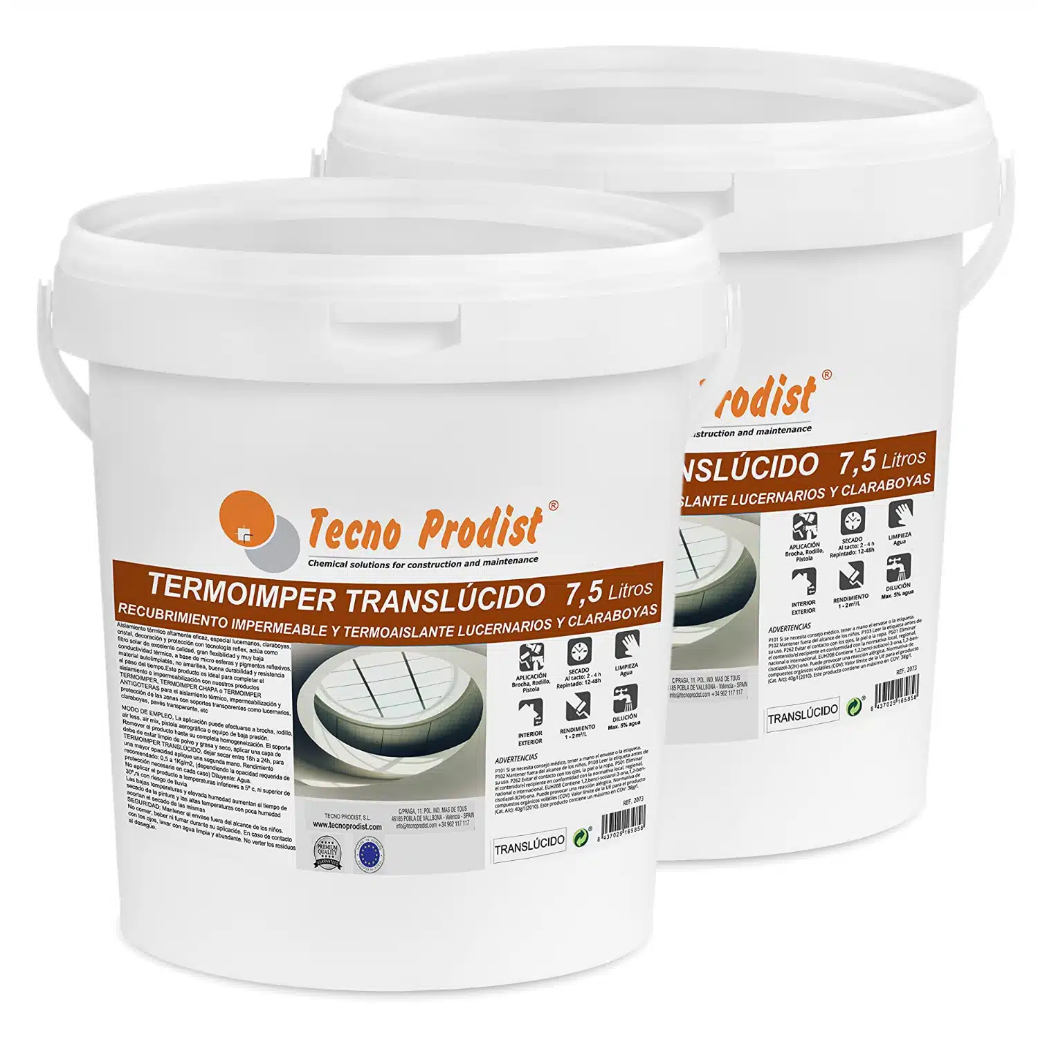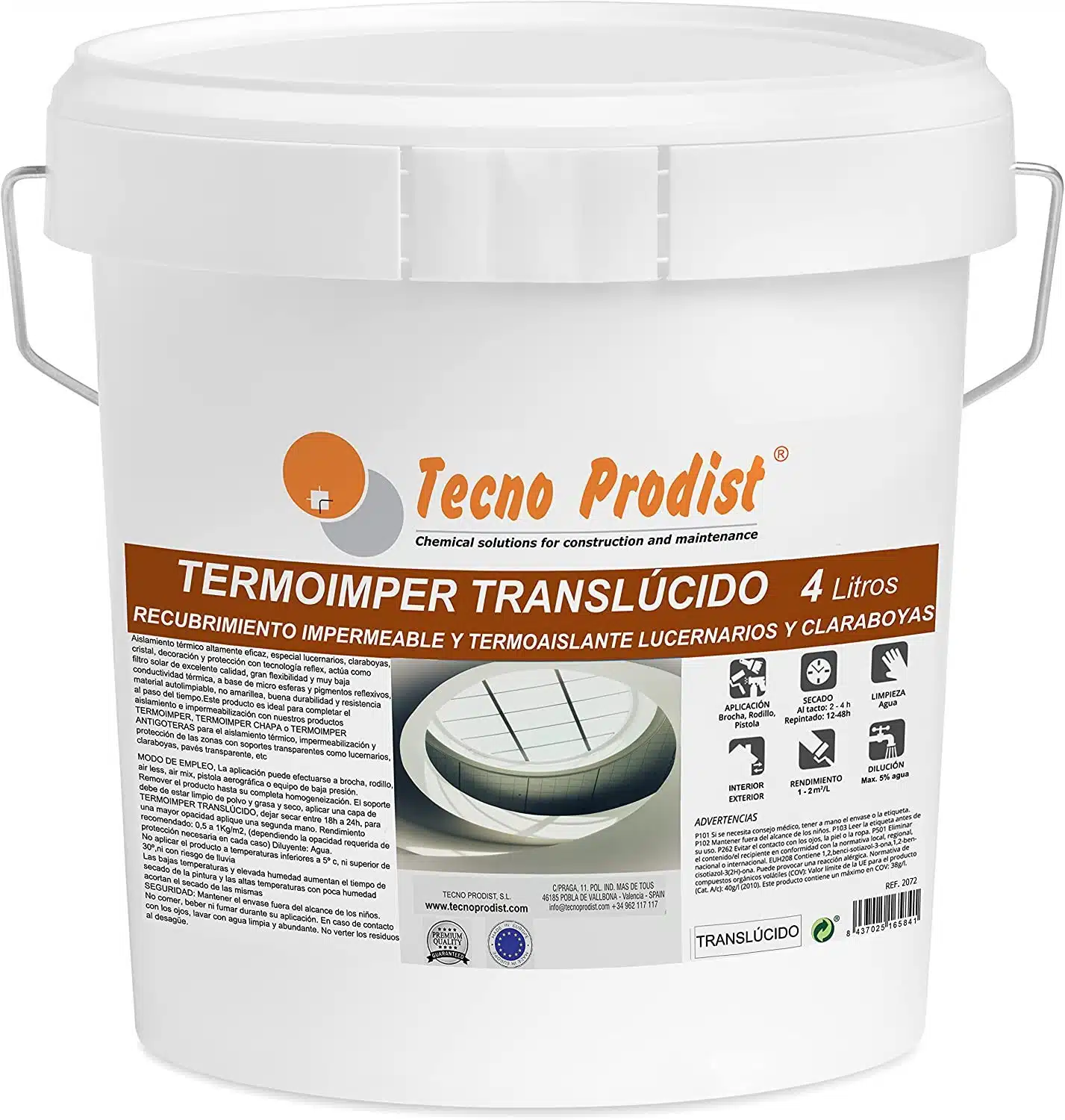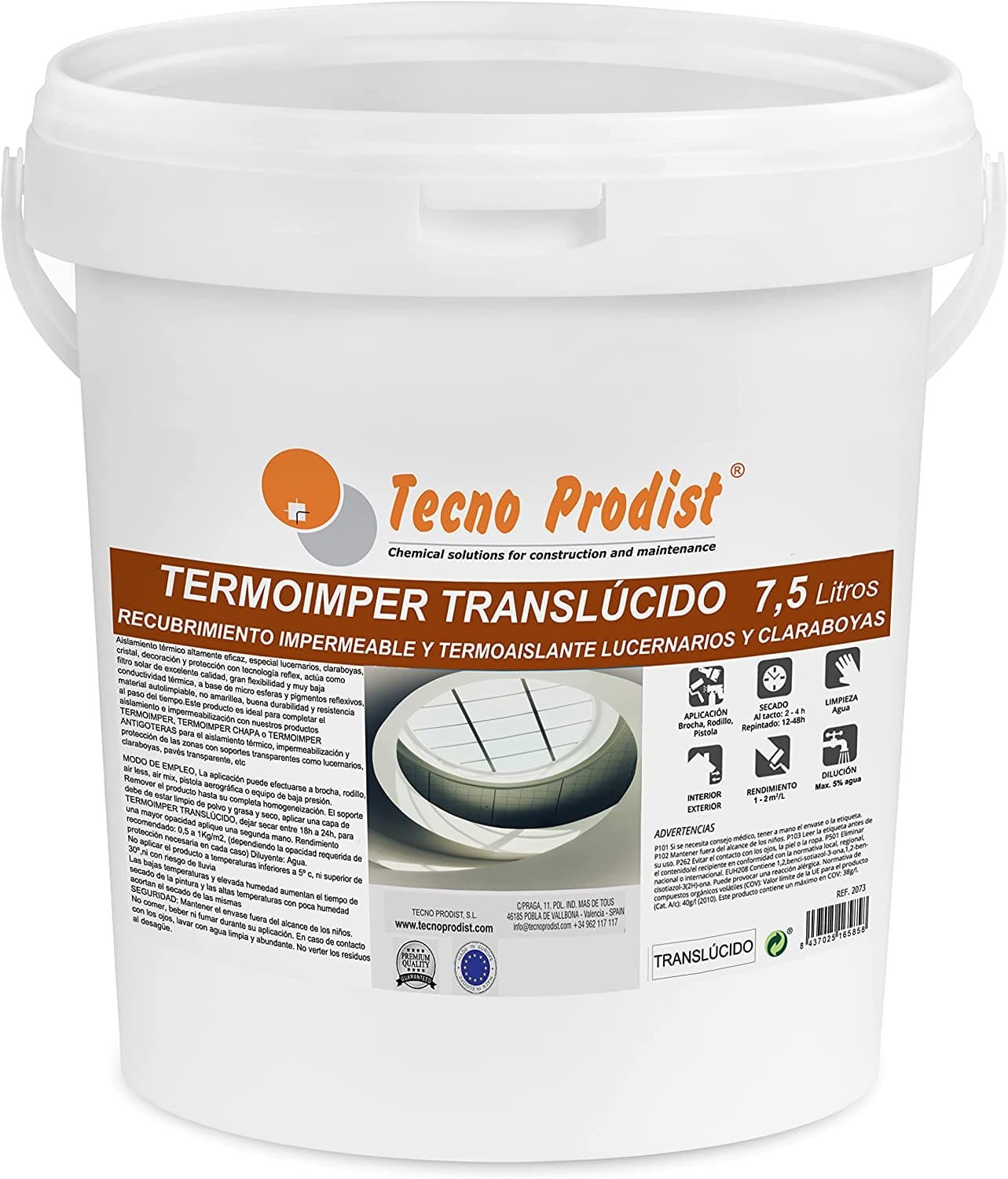 - IMPERMEABILIZANTE AL AGUA, TERMOAISLANTE Y TRASLÚCIDO, Aislamiento térmico altamente eficaz, especial lucernarios, claraboyas, cristal, decoración y protección con tecnología réflex, actúa como filtro solar de excelente calidad, gran flexibilidad y muy baja conductividad térmica, a base de micro esferas y pigmentos reflexivos, material autolimpiable, no amarillea, buena durabilidad y resistencia al paso del tiempo. El acabado es ligeramente blanquecino, como un cristal helado, deja pasar la luz pero no se ve el exterior
