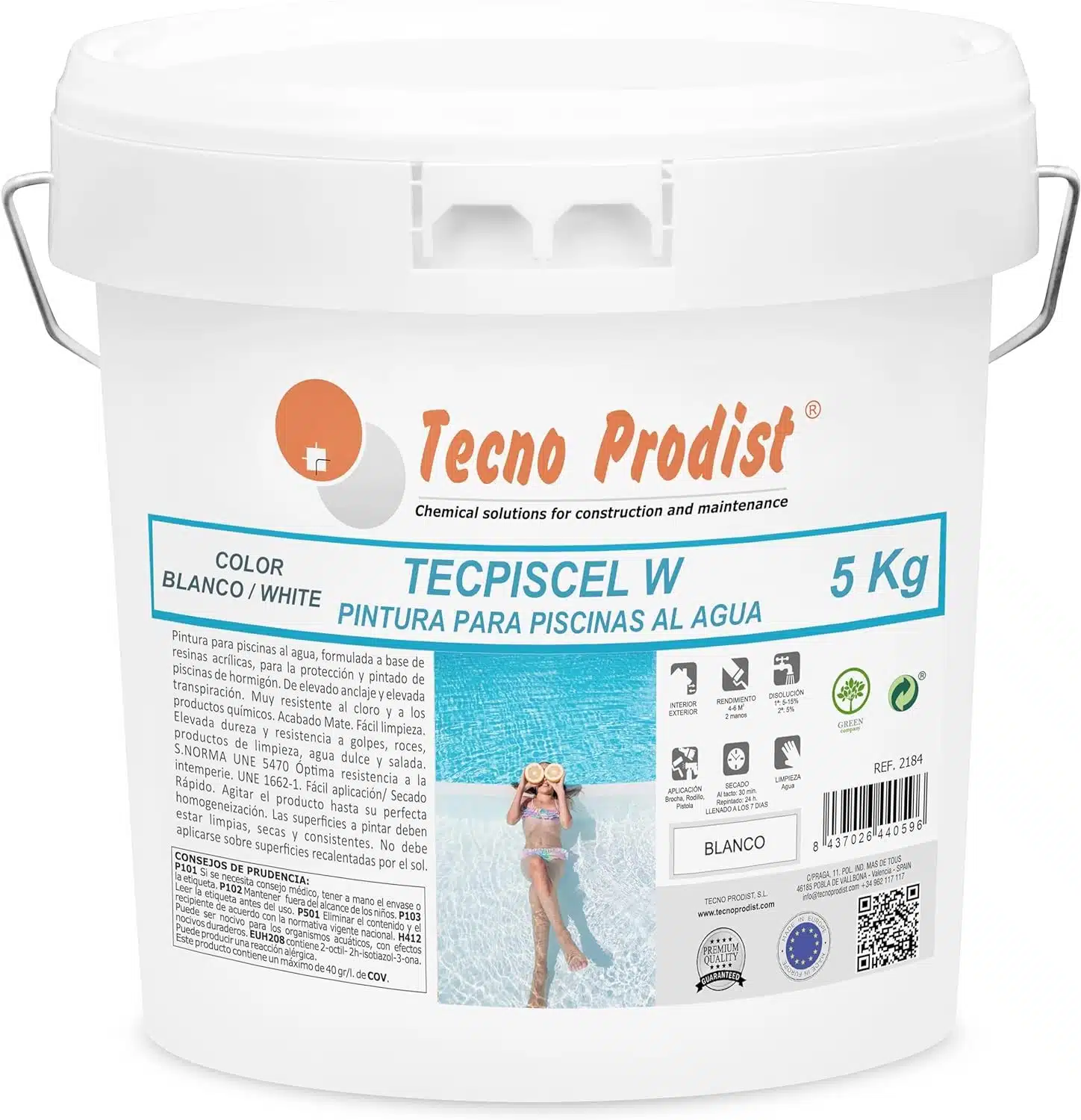 Tecpiscel W de Tecno Prodist es una pintura al agua de alto rendimiento diseñada específicamente para piscinas, proporcionando una solución eficaz y duradera en decoración de superficies en contacto permanente con agua. Esta pintura combina resistencia, flexibilidad y gran capacidad de cubrición, convirtiéndola en una de las mejores opciones en pinturas impermeabilizantes para piscinas.