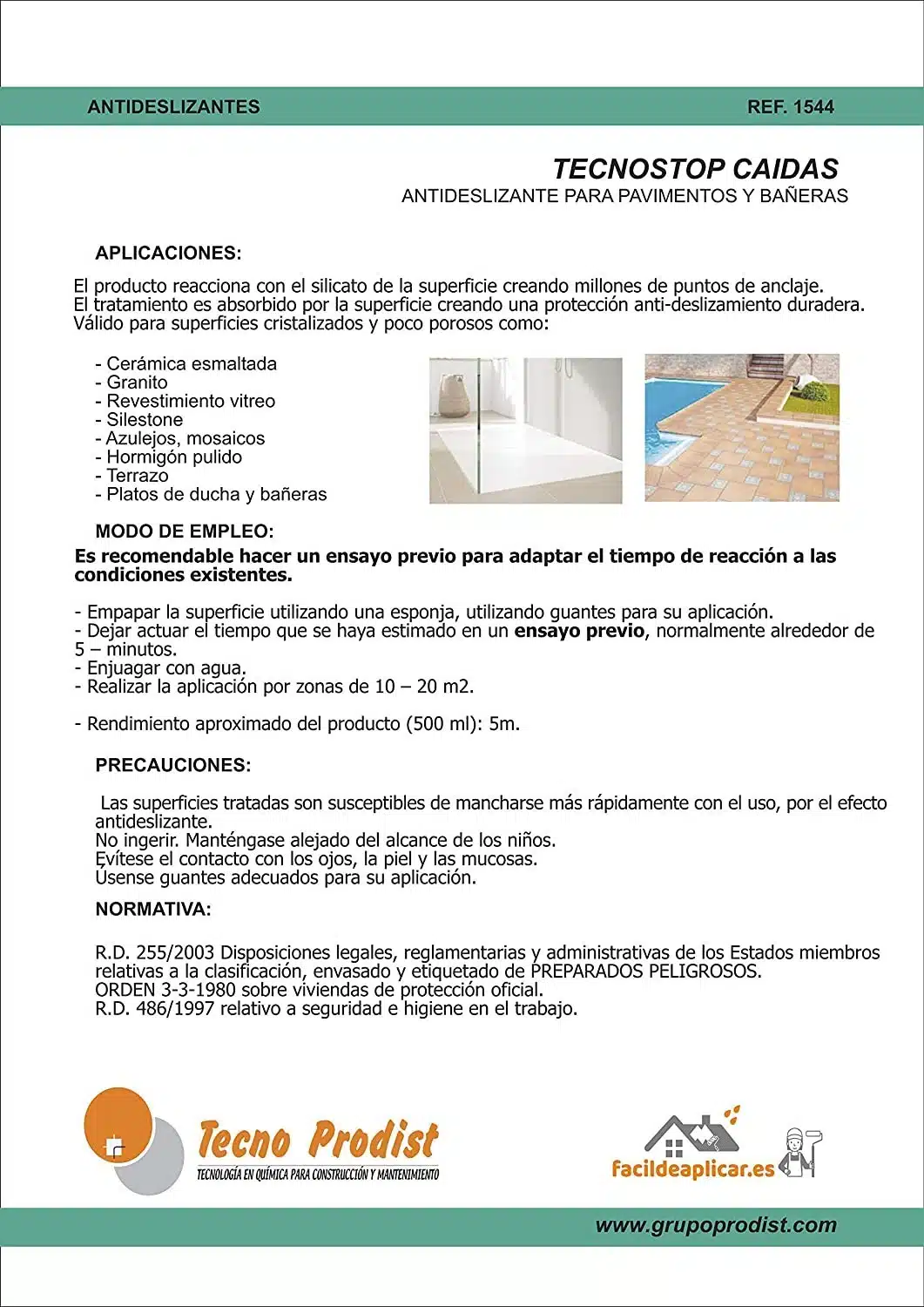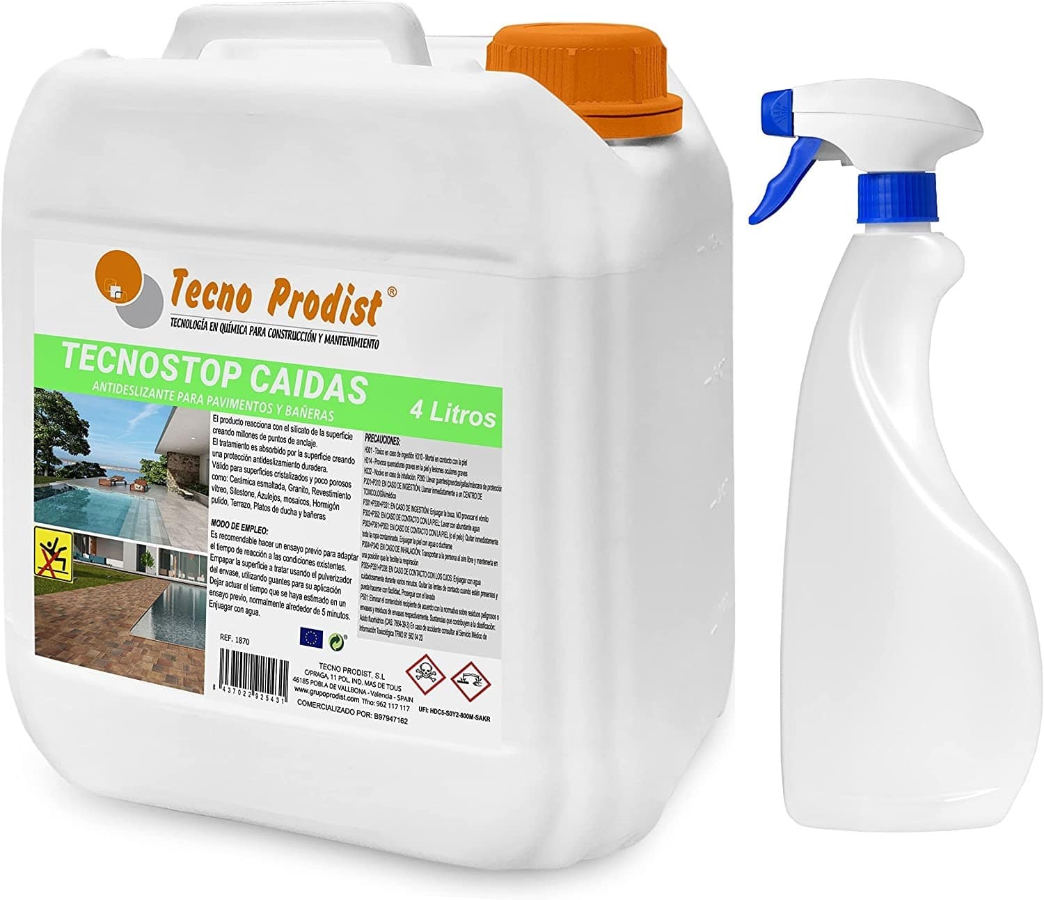 Tecno Stop Caídas de Tecno Prodist es un líquido antideslizante suelo diseñado para mejorar la seguridad en superficies resbaladizas, como duchas, bañeras, pavimentos y cerámica. Este producto innovador crea una reacción química con el sustrato que la hace antideslizante sin formar una película que aumenta la fricción en el suelo, reduciendo significativamente el riesgo de caídas y accidentes en zonas húmedas o de alto tránsito. Ideal tanto para uso doméstico como profesional, Tecno Stop Caídas es la solución perfecta para quienes buscan seguridad sin comprometer la estética de sus espacios, crea una reacción química con el sustrato que la hace antideslizante sin formar una película.