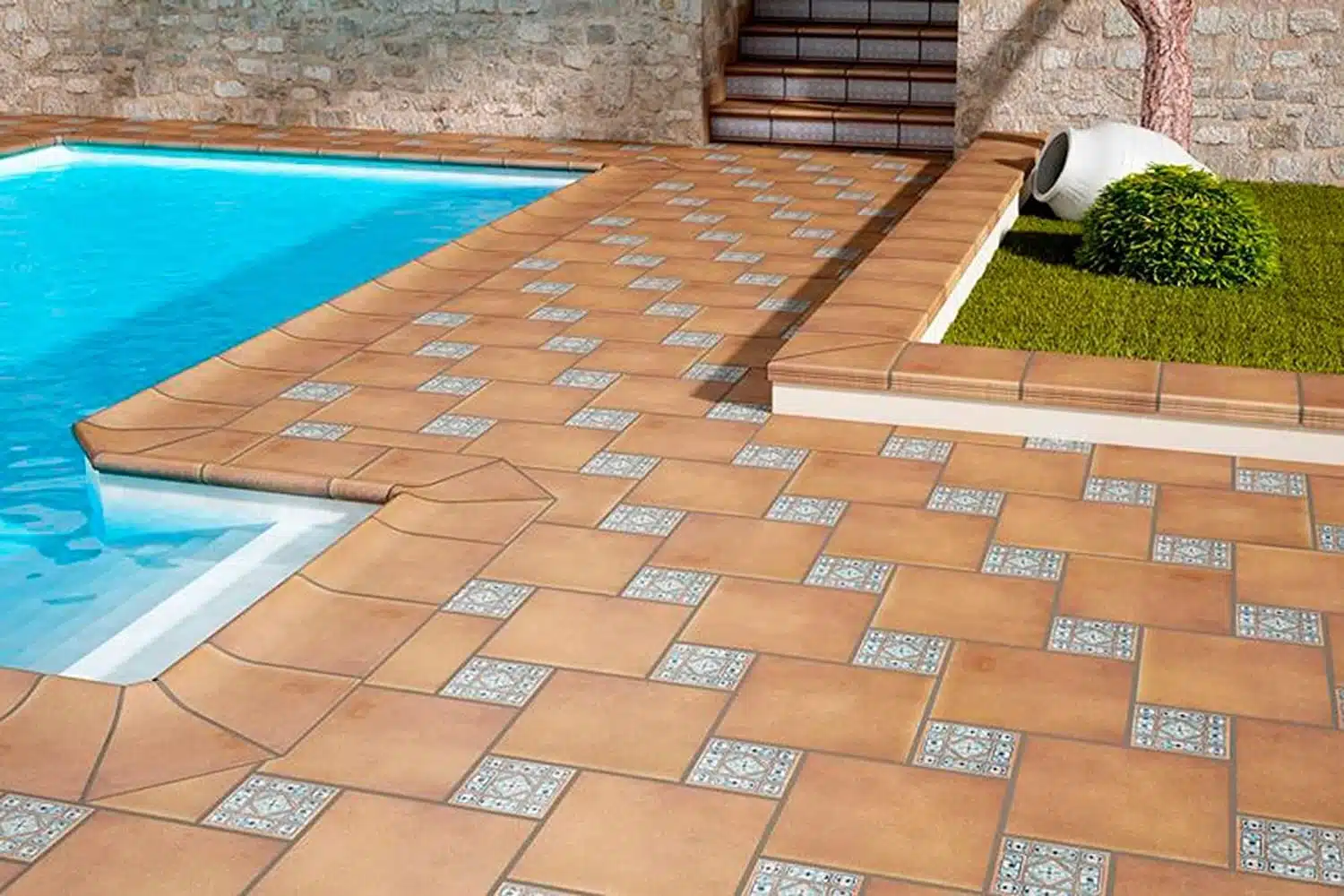 Pavimentos exteriores: Ideal para terrazas, piscinas y entradas, donde la lluvia puede causar superficies resbaladizas.