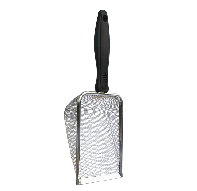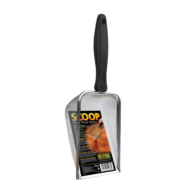 Esta pala de metal duradera con agarre confortable es el tamaño y ángulo perfecto para llegar a las esquinas del terrario y cuenta con una fina malla para capturar más desechos.