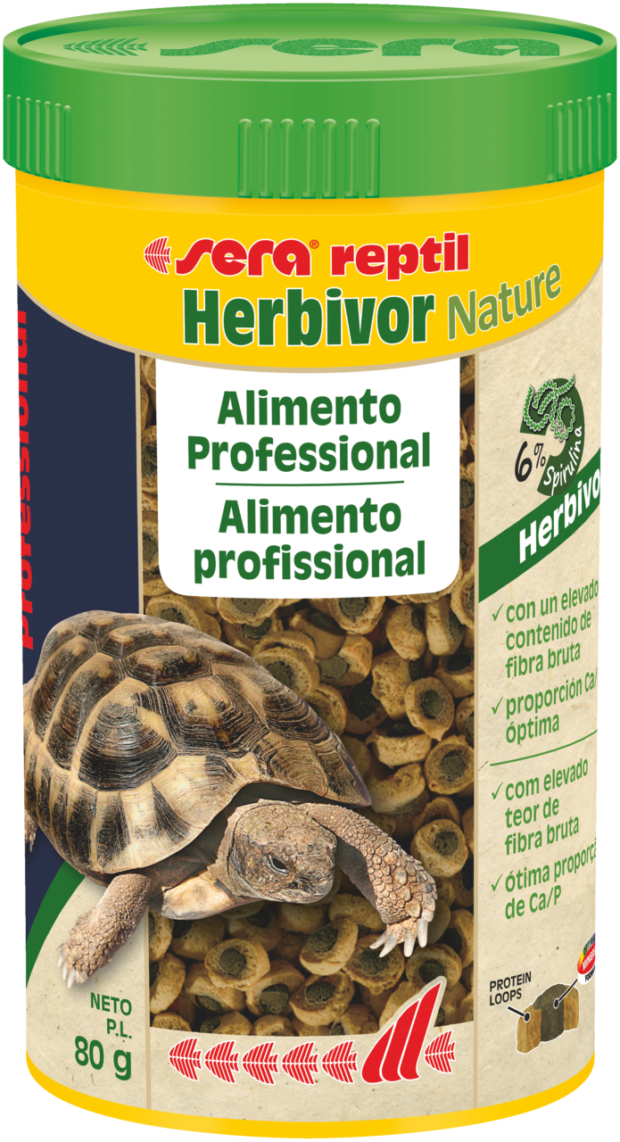 sera reptil Professional Herbivor Nature es el alimento complementario sin colorantes ni conservantes en forma de sabroso granulado bicolor elaborado mediante el eficaz proceso de coextrusión para todos los reptiles herbívoros, como las tortugas terrestres y las iguanas.El anillo contiene una mezcla rica en fibra bruta a partir de las hierbas más variadas adecuadas a su dieta natural y pequeñas cantidades de proteínas y grasas de alta calidad, también necesarias. El núcleo, extrusionado a baja temperatura y, por tanto, conservando especialmente los nutrientes, es rico en vitaminas vitales, minerales y algas para reforzar las defensas. Su óptima relación entre calcio y fósforo es la base para un crecimiento sano de huesos y caparazones.Anillo Para una excelente aceptación y la satisfacción de las necesidades nutricionales específicas de los animalesNúcleo Cuidadosamente preparado en un proceso de baja temperatura – para la conservación óptima de las sustancias vitales sensibles y valiosas